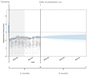 Example 1 – Before tamping: 3-month forecast at the beginning of July, showing a stable development under the predefined threshold (3 mm)