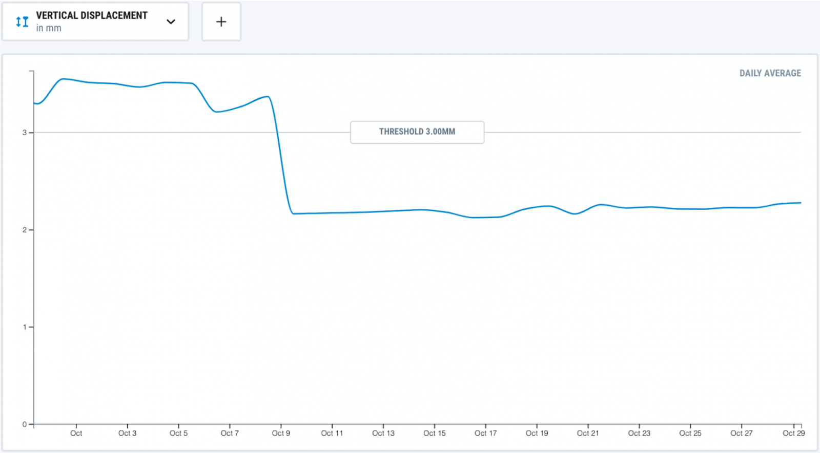 This is an example of successful tamping: the vertical displacement indicator was improved and remained stable